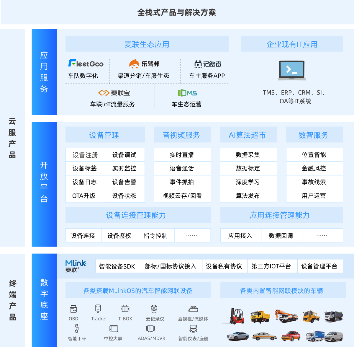 麦谷智云是麦谷车联专门为车联网领域的开发者推出的云服务平台,其目的是帮助开发者迅速接入各类终端设备 (如trackel类设备、OBD设备、记录仪、后视镜、车机等) ,打通设备与云端的双向通信。传统企业的车联网平台建设常常遇到各种各样的困难,这已经严重制约了车联网的发展。对此,麦谷科技针对行业痛点,提供了一系列云服务,帮助车载智能硬件厂商、TSP运营服务商、O2O服务商快速构建车联网云服务系统,打造开放互联新生态,实现各种车联网软/硬件融合、云端交互、大数据运营、场景化服务的完美结合,为用户连接新的价值!
